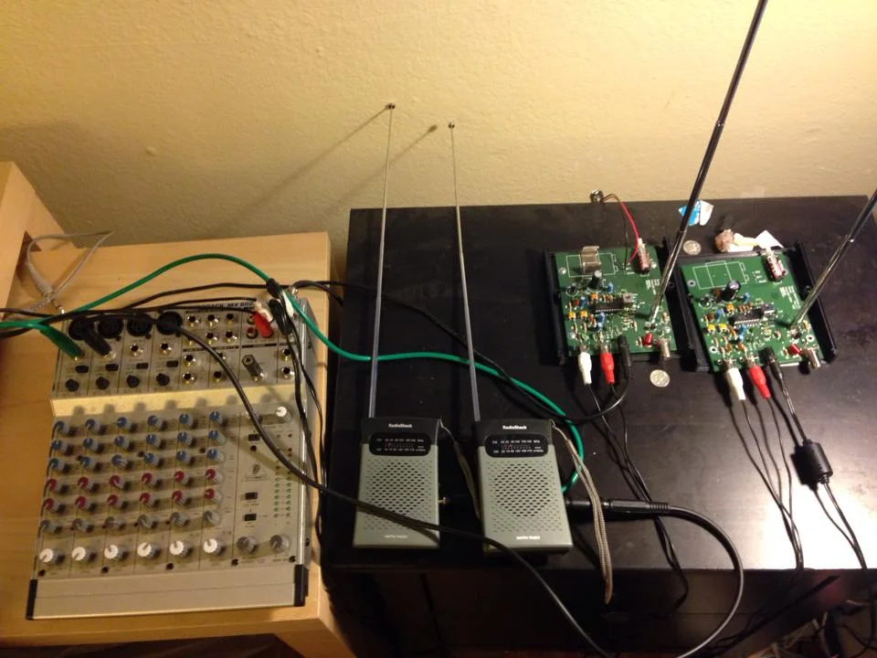 These minute long Still Lifes were arrived at through the manipulation of a radio feedback instrument, components of which consist in two FM radio transmitters, two FM radio receivers, one mixer, and various cables. Adjustments are made to panning, equalization, and volume until a semi-stable, self-generating state is found, at which point I begin recording and refrain from touching the knobs. The music heard here is the natural wellspring of electromagnetic waves and circuitry.